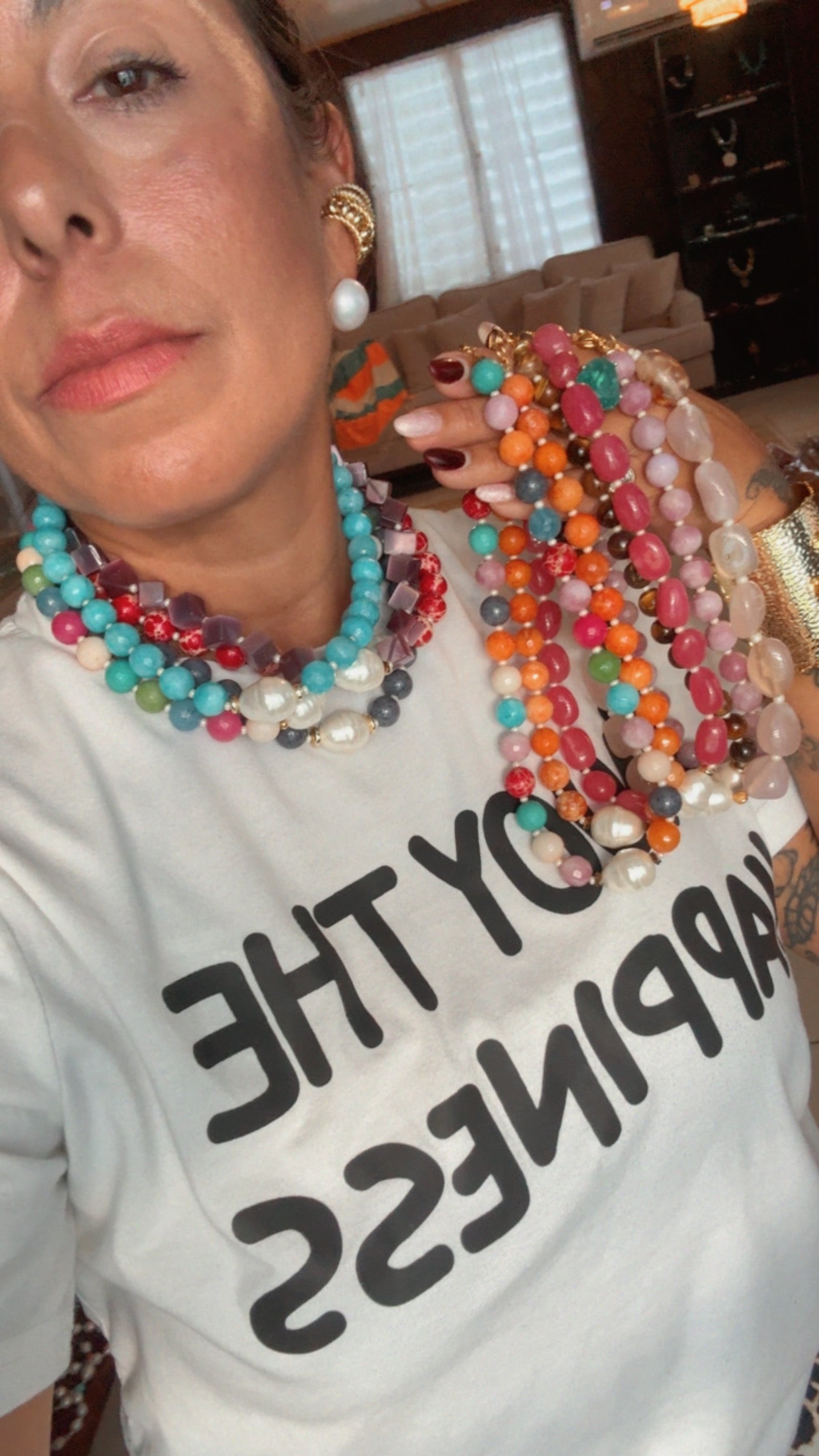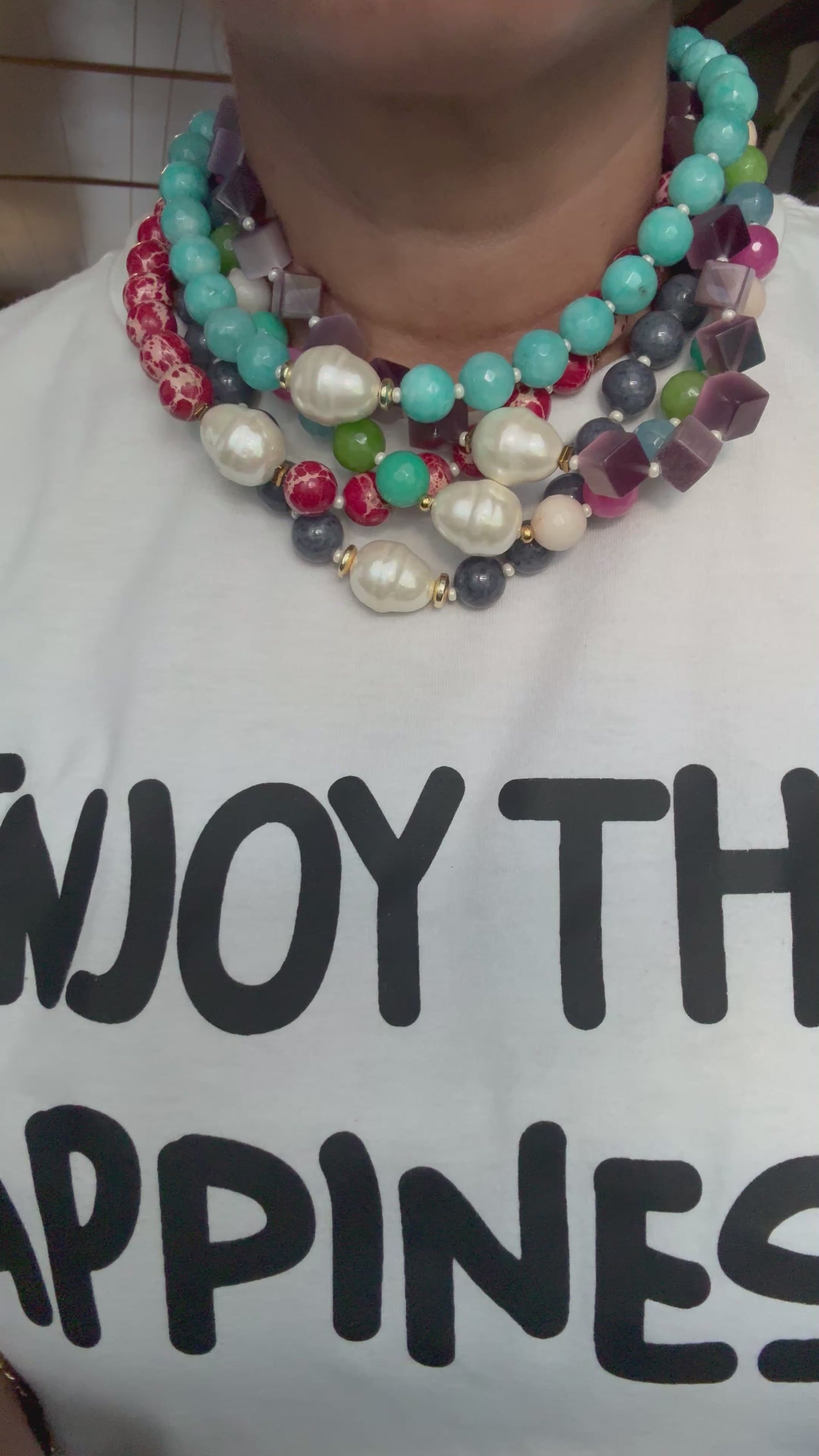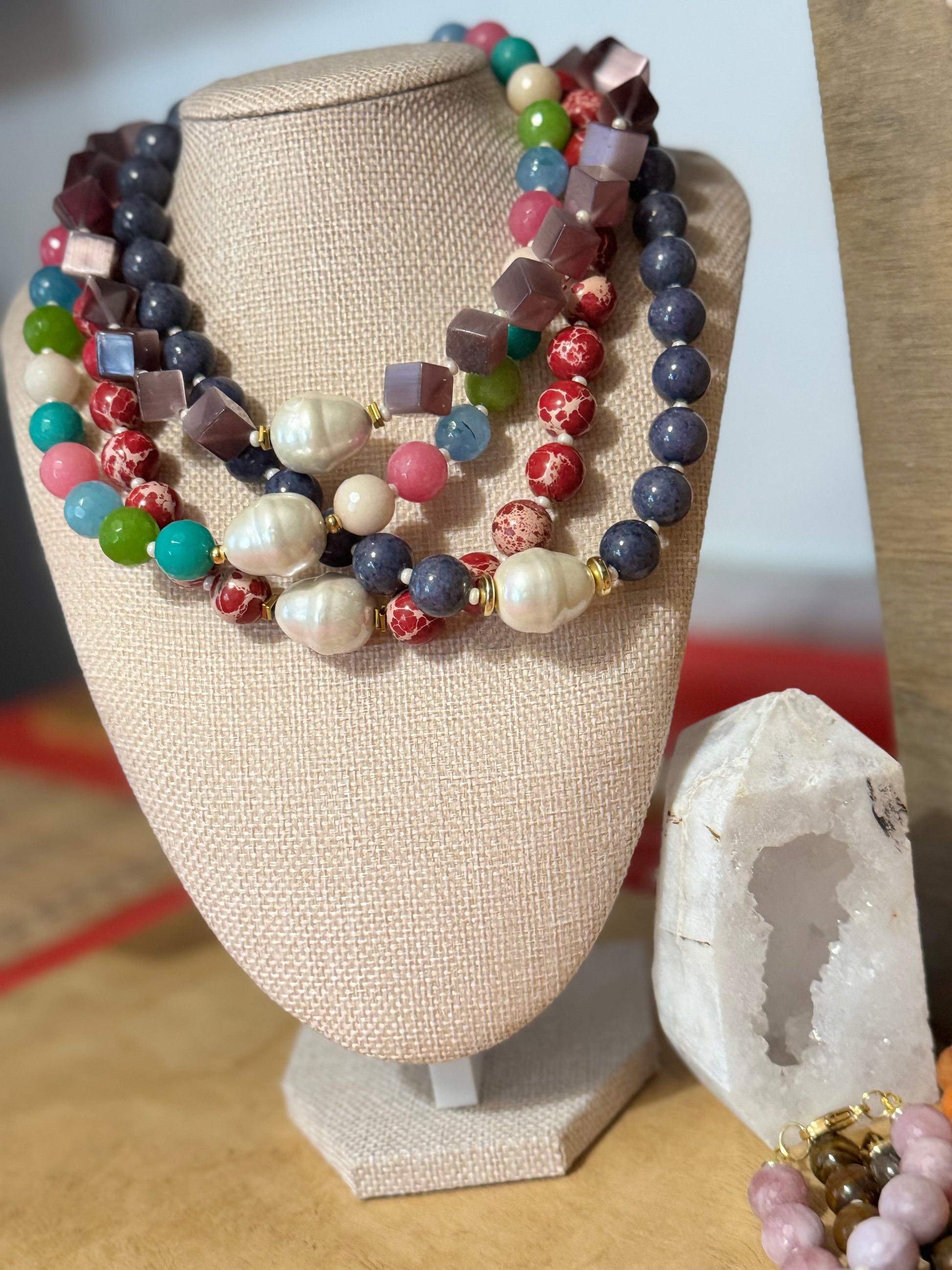 Hermoso collar elaborado en semipreciosas y perla nácar como pieza focal eh inspirado en la mujer profesional elegante y encantadora, llénate de amor con una joya exclusiva ! Piedras variadas ! Escoge tu favorito! 18 inch..