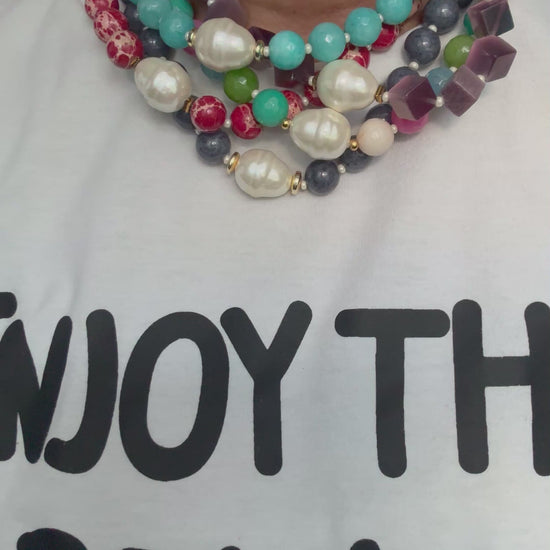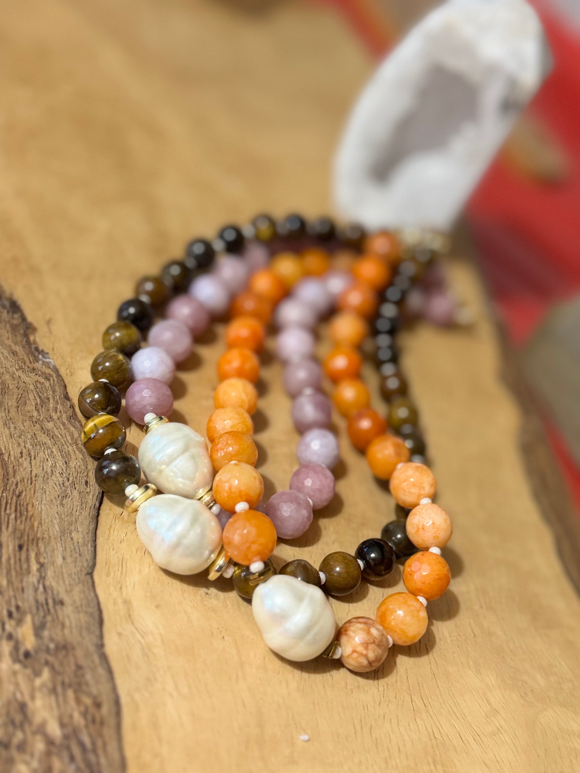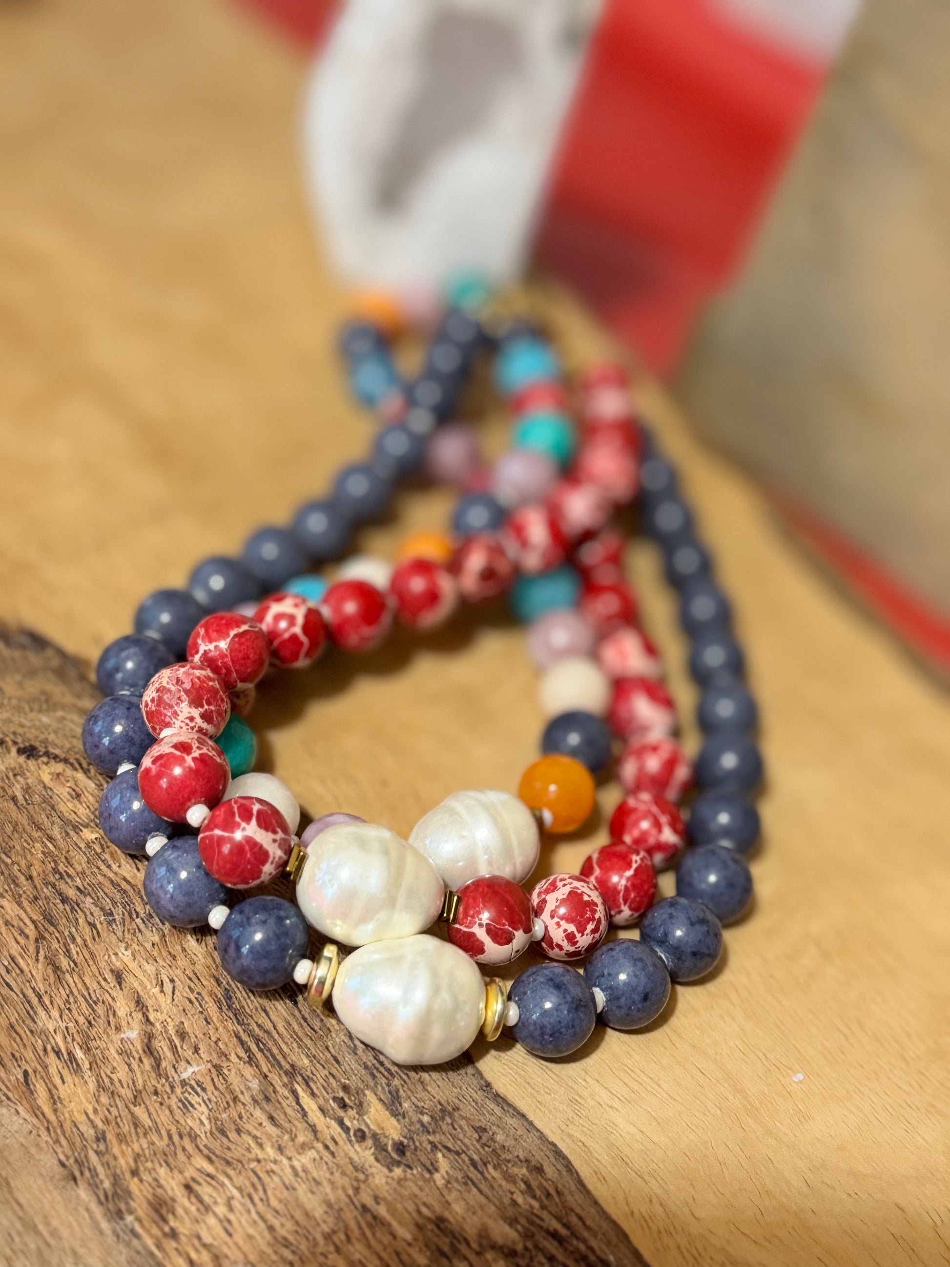 Hermoso collar elaborado en semipreciosas y perla nácar como pieza focal eh inspirado en la mujer profesional elegante y encantadora, llénate de amor con una joya exclusiva ! Piedras variadas ! Escoge tu favorito! 18 inch..
